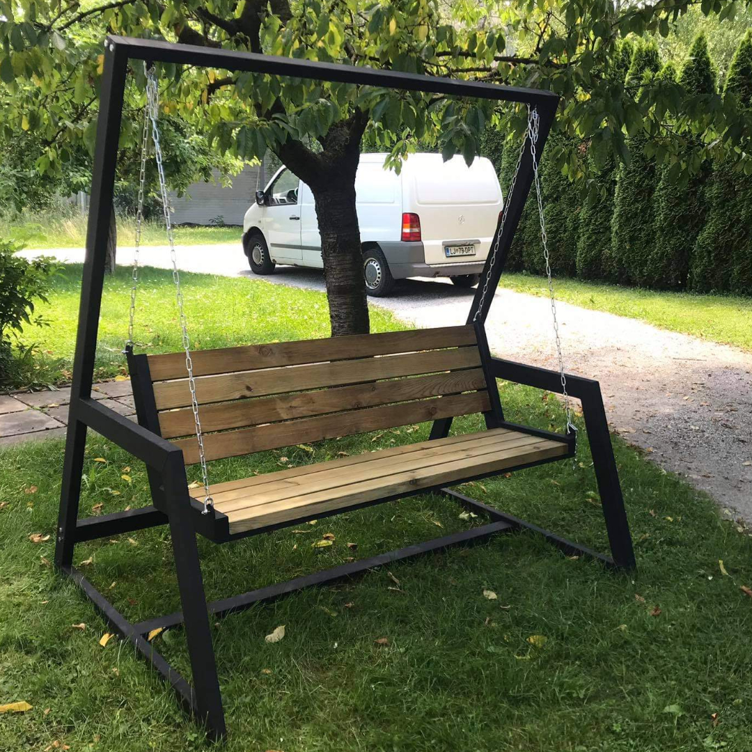 Gugalnica je narejena v kombinaciji železnih profilov in macesnovih desk. Opcija so vroče cinkano, prašno lakirano ali kombinacija obeh. Dimenzije po želji strank.